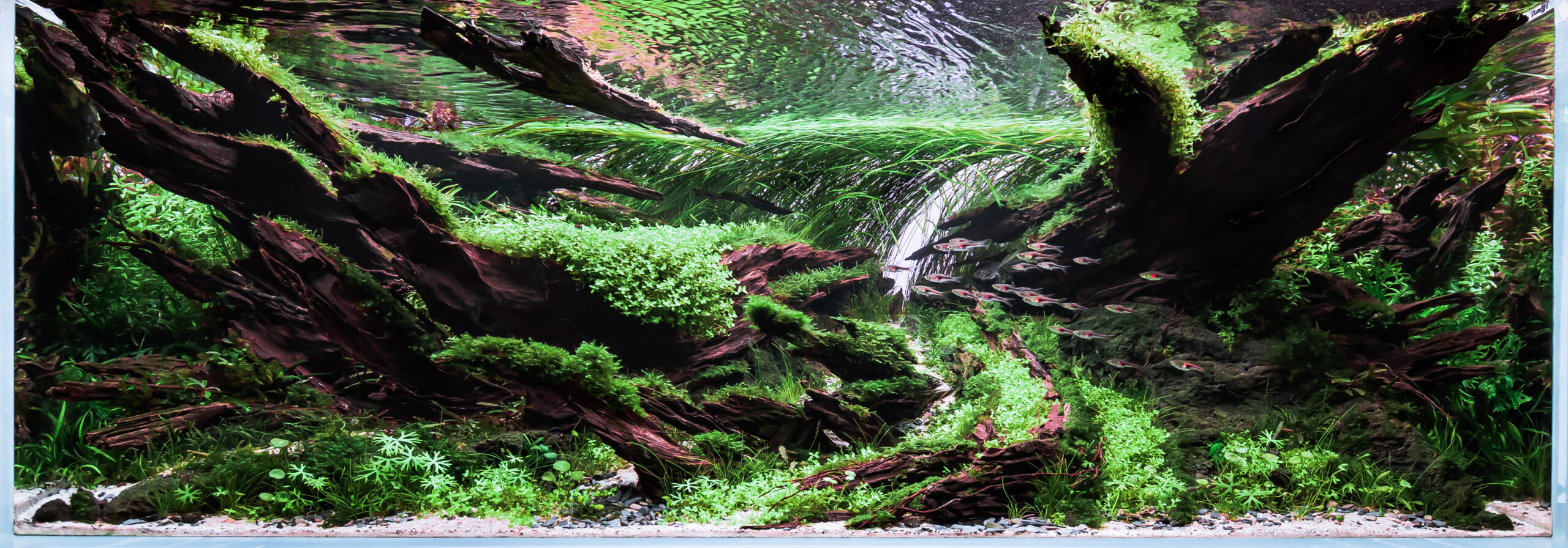 "super dynamic ! love the foreground, superb mixture of plants, skillfull arranged driftwood, looks like moving, even on the photo ;) "