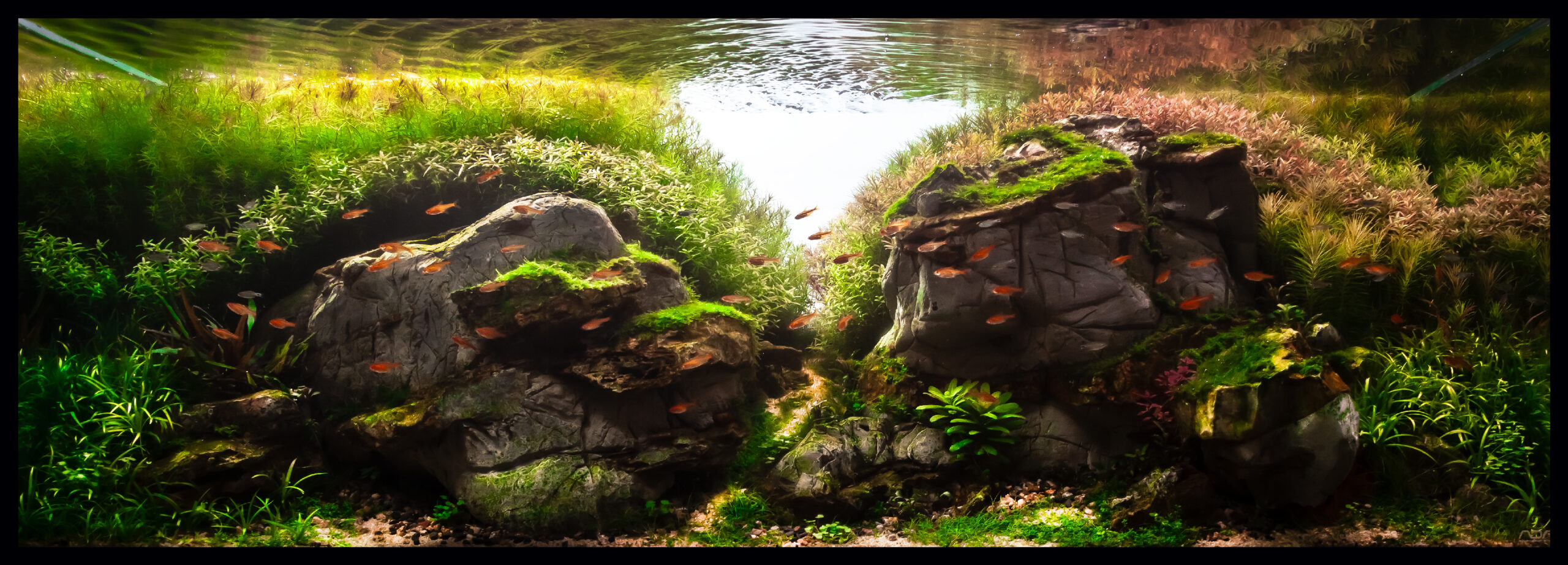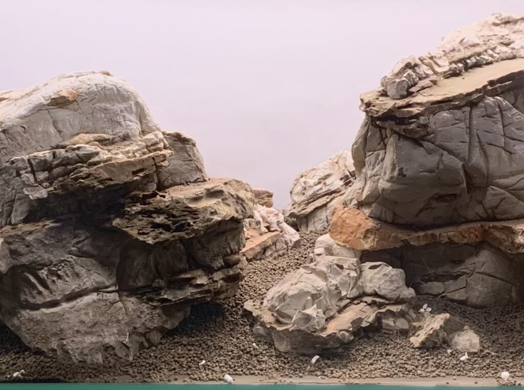 "A heavy hardscape setup, stem plant on the back trim properly, if create more open area on foreground could better balance the shaded area on hardscape."