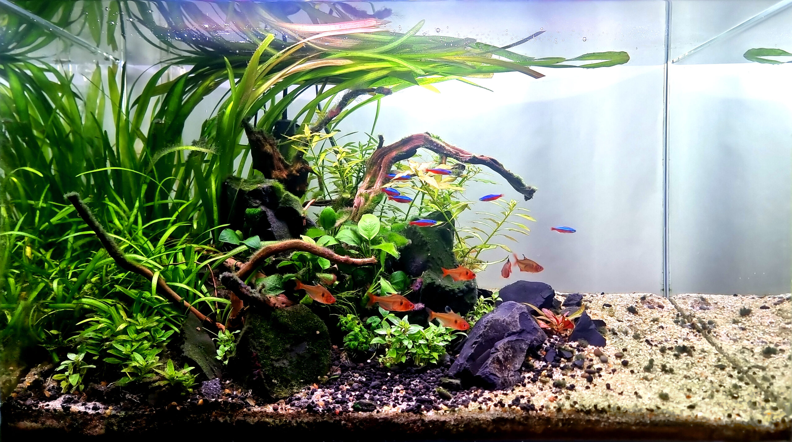 Manutenção: TPA 30% semanal, com limpeza dos vidros e limpeza geral. Fertilização Flora UP Micron e Macro Solo + Adjust P em dias alternados. Magnum Elixir Powerfert junto com Micron.